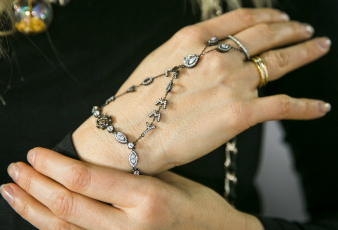 Юлианна Караулова влюбилась в браслет на ладонь «Ice Baby» (18 300 рублей), а Анастасия Гребенкина выбрала кольцо Full finger
