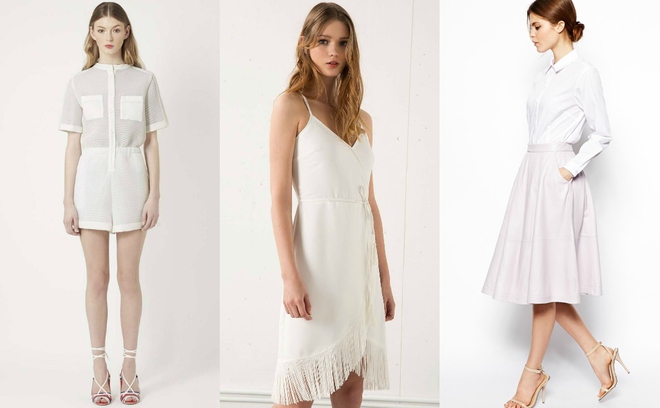 Еще один тренд этого лета - однотонный белый лук. Такой цвет оттеняет загар и вносит свежесть в летний образ. Белое платье-футляр или же белая блуза в паре с белыми укороченными брюками могут создать хороший деловой образ. Разбавь белый лук цветными украшениями и клатчем в тон.