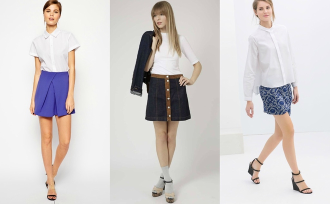 Белая рубашка сохранит нотки делового стиля, а цветная юбка добавит немного летней свежести в образ. Выбирай юбки со стандартной или завышенной талией. Помни, что в таком образе главным цветовым акцентом является именно юбка, поэтому откажись от ярких украшений и сумки с пестрым принтом, а также недень туфли нейтрального бежевого цвета.