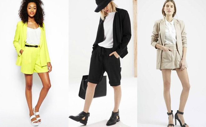Надев в офис шорты, не забывай, что они должны быть средней длины и из легкого материала, такого как лен или хлопок. Подходящим вариантом будут шорты со стрелками и завышенной талией. В данном случае блейзер с рукавами ¾ в паре с шортами создаст летний деловой лук.
