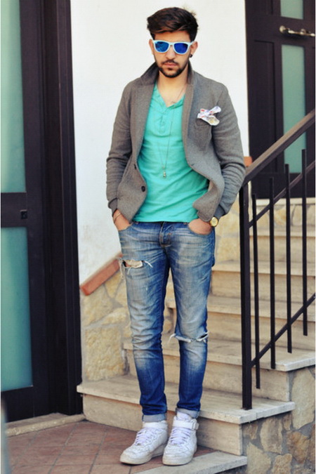 Изыскано будет смотреться на молодых людях приталенный пиджак и джинсы-дудочки. Только важно учесть, что будущий сезон предполагает применение ярких, насыщенных тонов и строгого минимализма в отношении аксессуаров.