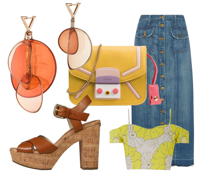 Поход на музыкальный или гастрономический фестиваль – повод в очередной раз обратиться к популярному стилю 70-х годов. Джинсовая юбка до щиколотки, босоножки на устойчивом пробковом каблуке и крупные украшения – идеальные спутники для танцевальных выходных в парке.