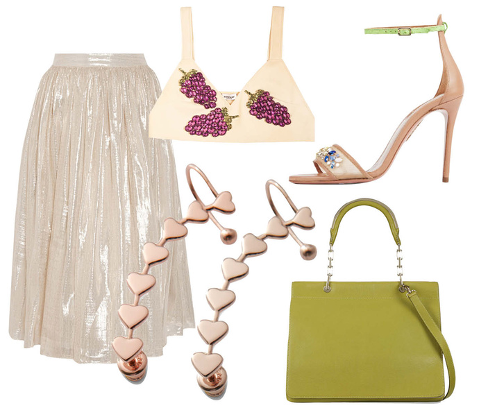 Серьги Louis Vuitton, босоножки MICHAEL Michael Kors, топ Topshop, юбка Current/Elliot, сумка Furla