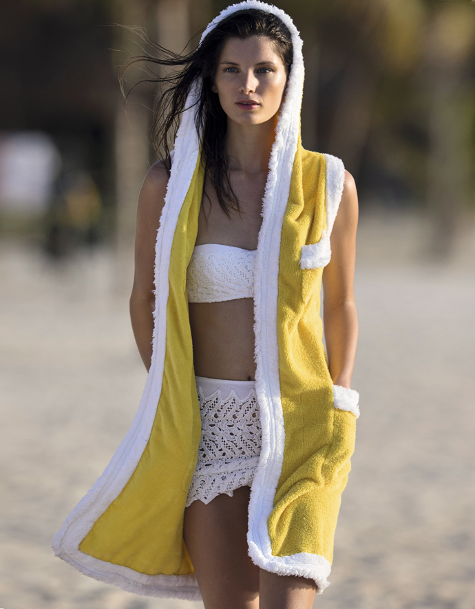 Халат, Moschino; вязаный купальник, Ermanno Scervino Beachwear