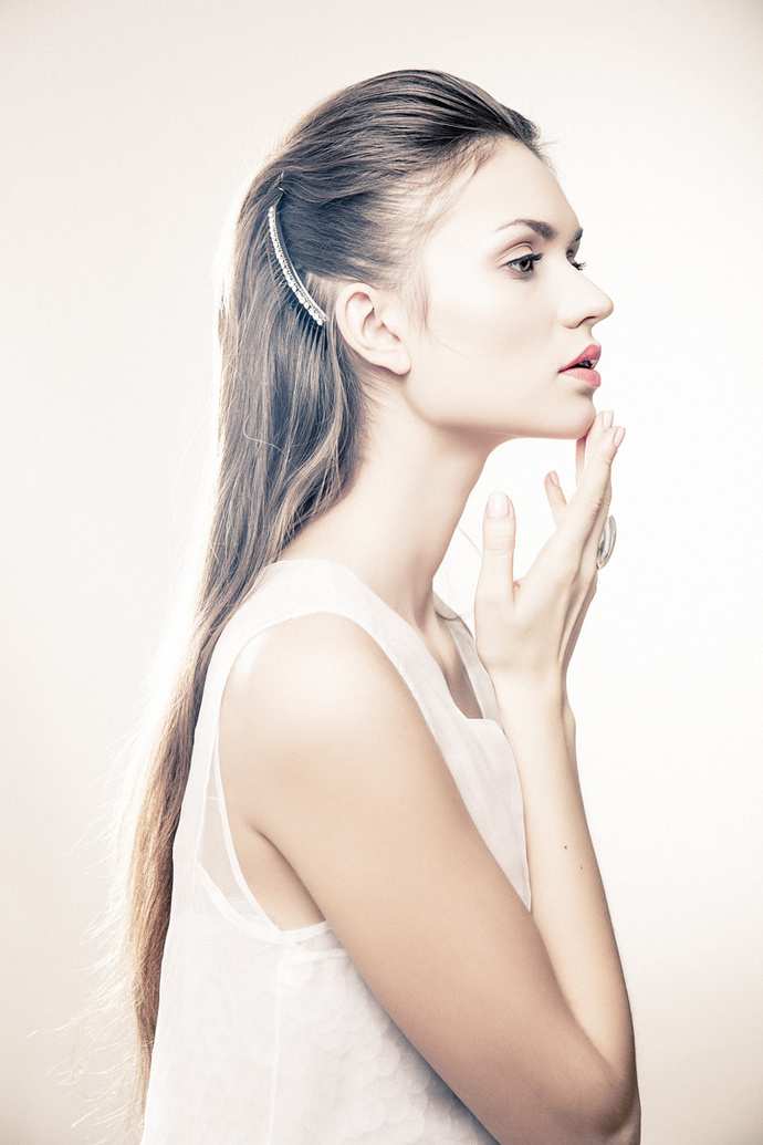 Зачесанные назад волосы — верх минимализма. Однако и они могут выглядеть шикарно. Два условия: пряди должны сиять и быть идеально прямыми. Для этого во время мытья нанесите увлажняющую маску, затем несмываемый восстанавливающий уход и сыворотку против пушения. При сушке вытягивайте волосы, не раскладывая на пробор.