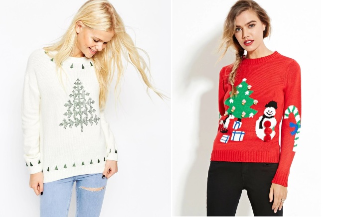 Многим трудно представить себе зиму без тёплого, уютного свитера с новогодними рисунками, принтами, вышивками, аппликациями и надписями. Такая вещица должна быть в гардеробе каждой девушки. Смешные кофты, свитшоты и джемперы с изображением Деда Мороза, снежинок, елки, снеговика и оленей не только согреют в зимние морозные дни, но и создадут ощущение праздника задолго до ночи 31 декабря. В нашем обзоре топ-10 самых забавных новогодних свитеров от модных брендов.
